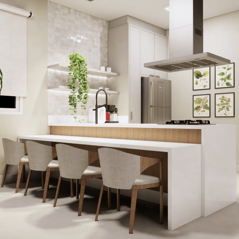 Em resumo, nosso espaço gourmet foi projetado para oferecer uma área ampla e acolhedora para o lazer e convívio social. Com uma estética clean e moderna, combinada com a presença da natureza e tons amadeirados, é o ambiente ideal para reunir amigos e familiares em momentos inesquecíveis.
