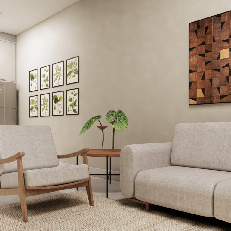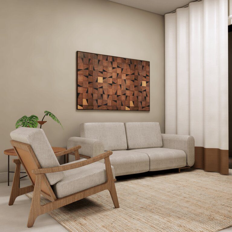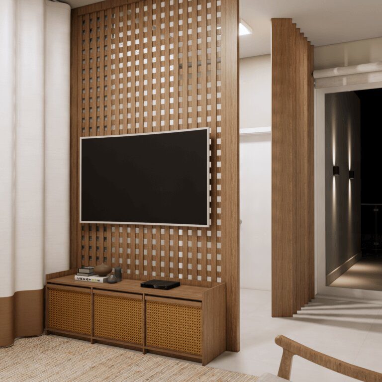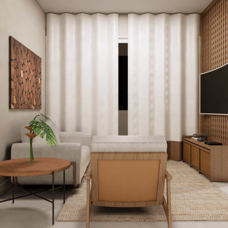 Com um projeto moderno e sofisticado, a estética clean e minimalista é combinada com a presença da natureza e tons amadeirados, criando uma atmosfera de tranquilidade e relaxamento. A utilização de plantas e vegetação também traz a natureza para dentro do espaço, contribuindo para uma sensação de harmonia e equilíbrio.